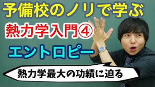 【大学物理】熱力学入門④(エントロピー) https://www.youtube.com/watch?v=gUdHEZGwsuw&t=77s 自発的に変化する方向がある 何か特徴付けできないか? →エントロピー.S (状態量) Sadi Carnot 熱力学第二法則 断熱過程においてエントロピーは減少…